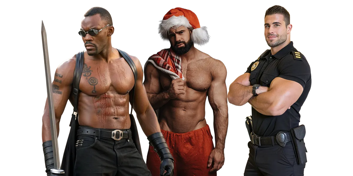 Choose from over 100 outfits—firefighters, police officers, doctors, cowboys, seductive nurses, CEOs, military, construction workers, mariachi, pizza boy, UPS, lawyer, and more.